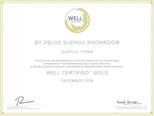 WELL健康建筑标准?是一个基于性能的标准体系,通过实际表现来测量、认证以及监测室内环境对在建筑空间内生活、工作或学习的人们的健康和福祉的影响。“现在中国已成为全球第一大WELL健康建筑认证市场,注册面积总量位居世界第一”。IWBI亚洲区总裁雪娅女士表示,“By Delos苏州展厅在单次性现场检测下就成功通过WELL认证,充分印证得乐室(苏州)健康科技有限公司在健康建筑方面研发与努力的成果,亦必将成为未来全国范围内健康室内环境的示范项目。”