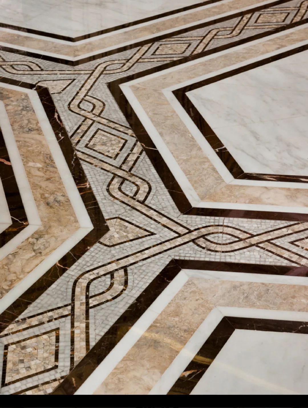 The floor is paved with cream-colored marble,
