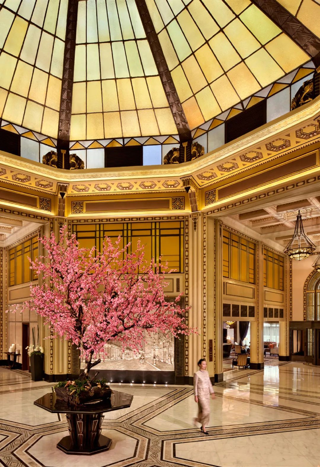 Every element of the interior color scheme at the Peace Hotel has been meticulously selected to accentuate a sense of prestige.