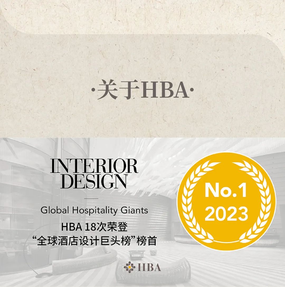 Founded in 1965, Hirsch Bedner Associates (HBA) is an award-winning, world-renowned hospitality design firm that has topped the "Global Hospitality Giants" list 18 times. With 23 offices in major cities worldwide and over 1,200 excellent designers from around the globe, HBA has created more than 2,000 top-quality projects in over 80 countries and regions. HBA continues to lead the development of the world's hospitality design industry by designing distinctive spaces for the most high-profile hotels, luxury brands, world-class residences, clubs, offices, and other projects.