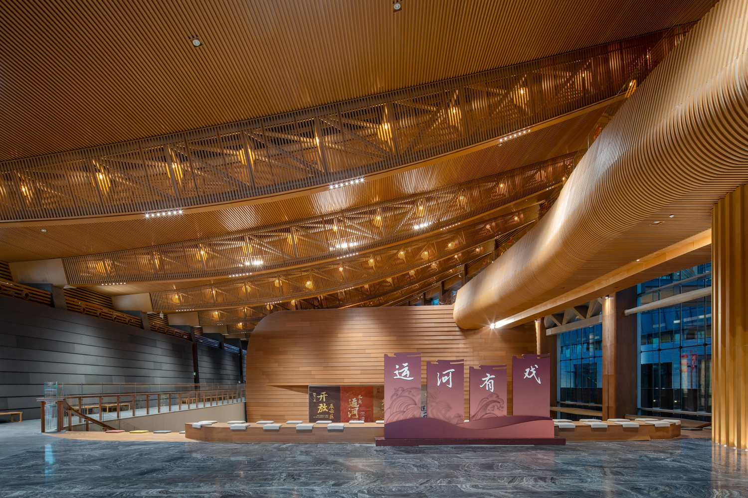 北京大运河博物馆(首都博物馆东馆)坐落于北京城市副中心城市绿心森林公园西北部,距京杭大运河约800米,总建筑面积9.97万平方米,是一座特大型综合类博物馆,与邻近的北京艺术中心、北京城市图书馆并称为北京城市副中心三大文化建筑。