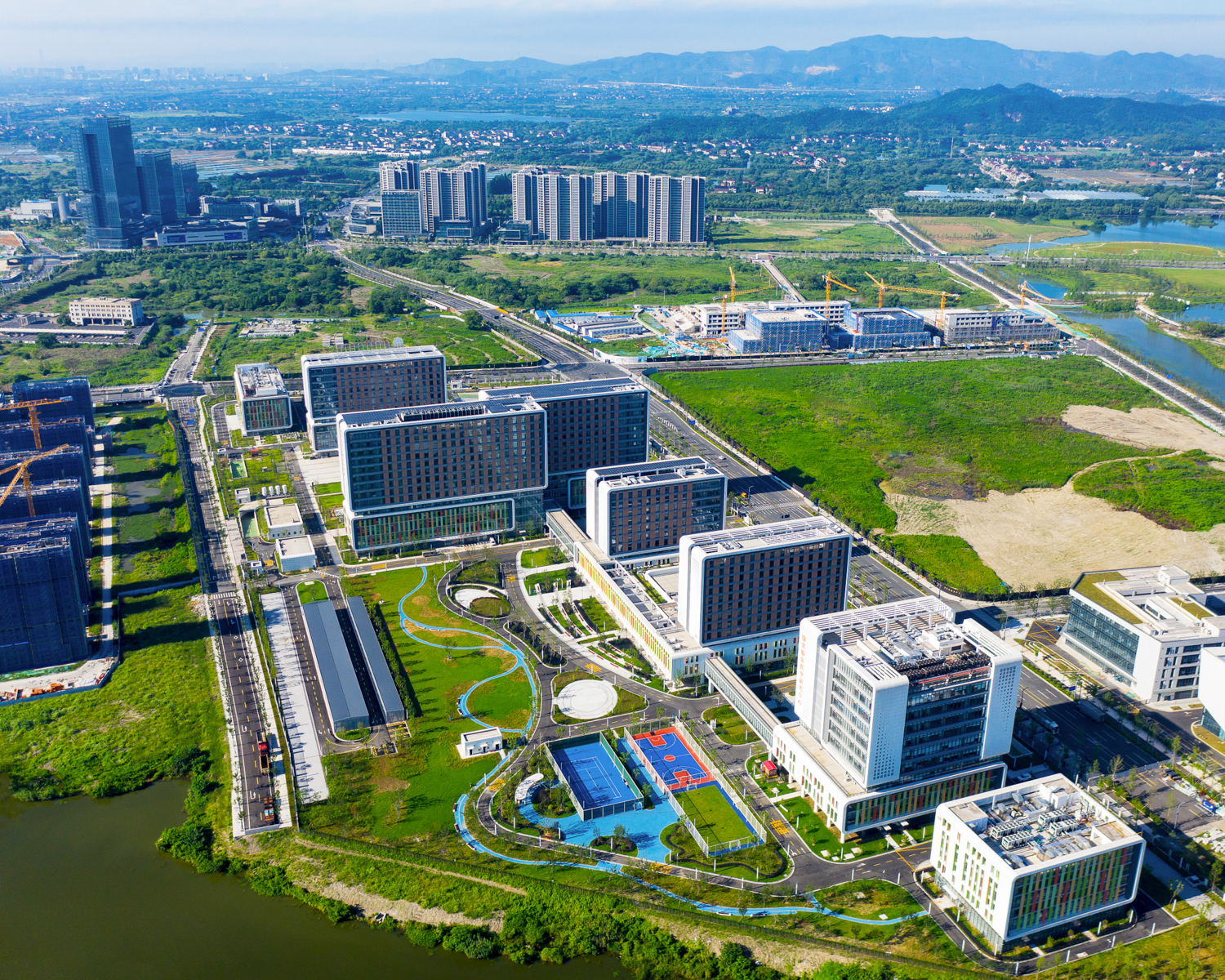 浙江大学医学院附属儿童医院莫干山院区位于浙江省德清县智能生态城,总建筑面积28.7万平方米,包含了国家儿童区域医疗中心、国家儿童健康与疾病临床医学研究中心、儿童突发公共卫生应急中心、国家儿科教学培训中心四大板块。
