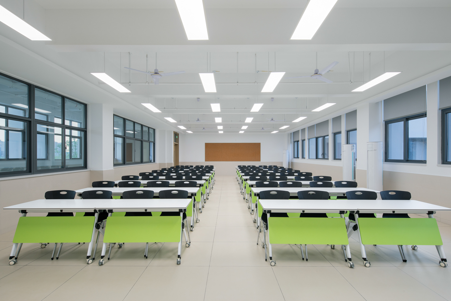从空中俯瞰,建筑形态与空间组织开放、互动性强且有人文性。建筑布局充分考虑不同学段学生的特点和需求,注重功能复合性与空间灵活性,满足现代化教学、活动、办公等多重需求。