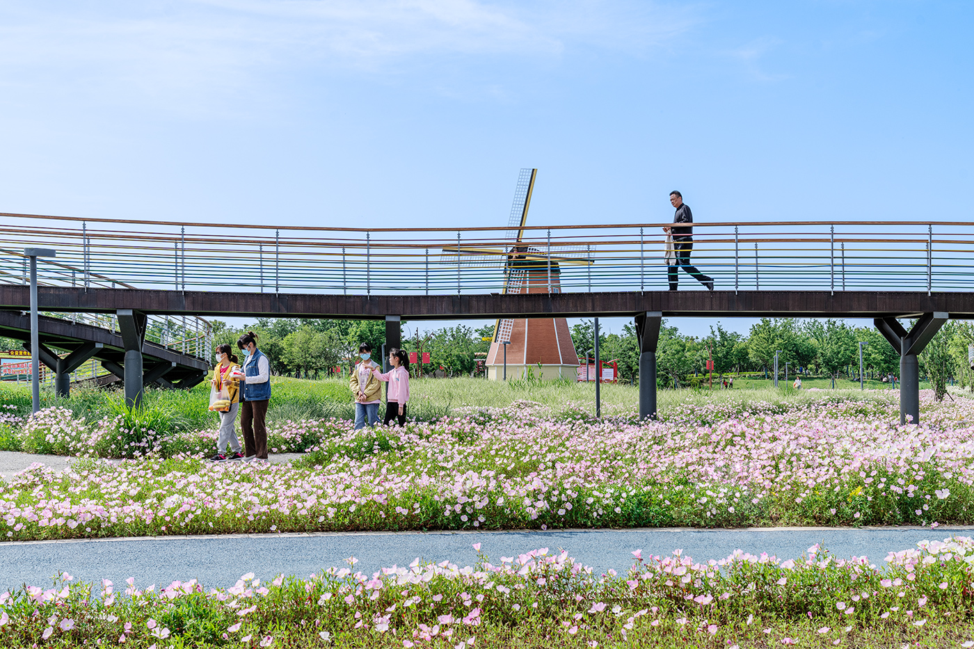 在这里,春夏可观花、秋冬可观果。坐拥600余种、近万株乔灌木,15万余平地被、花海,各类游乐设施齐全,是市民亲近自然、休闲健身的好去处;34万平方米的大型体量,提升生态多样性、助力低碳,填补正阳及周边城市植物科普教育基地的空白,更成为慎水河生态廊道建设的重要一环。正阳素有“中国花生之都”的美誉。植物园以“花生”为灵感来源,再现花生从发芽到结果的生长过程,以生命的孕育和生生不息,传递尊重自然的设计理念。