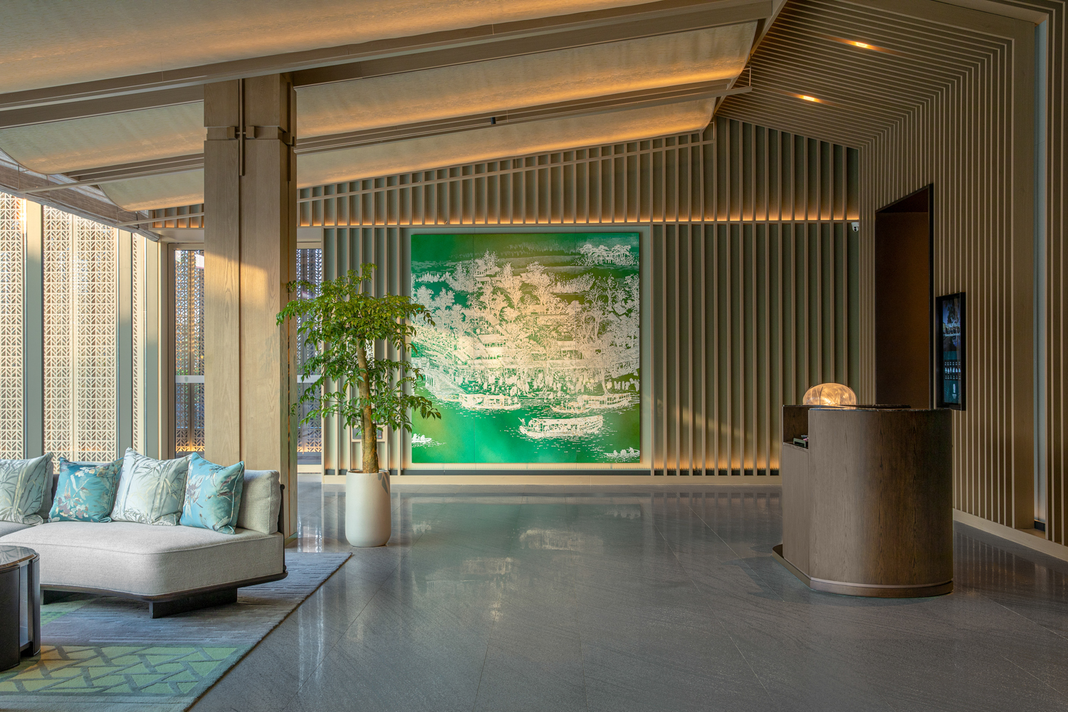 在苏州,在狮山大隐于市的绿色里,悦榕集团旗下悦榕庄和悦椿酒店以复合体形式座落于此,奉献独属于苏州的开场白。悦榕庄的整体风格更加优雅端庄,老钱风十足;年轻化的悦椿酒店更活泼明艳,主打家庭亲子出游。酒店建筑由GOA大象设计,室内设计则是星空体育旗下HBA打造,星空体育承接了两座酒店所有客房、包括大堂吧、餐厅、会议空间、泳池等公区室内精装修部分,总装饰面积29288㎡,在粉墙黛瓦这块“画布”上,移步易景、一砖一瓦打造出独具姑苏意蕴的避世之所。