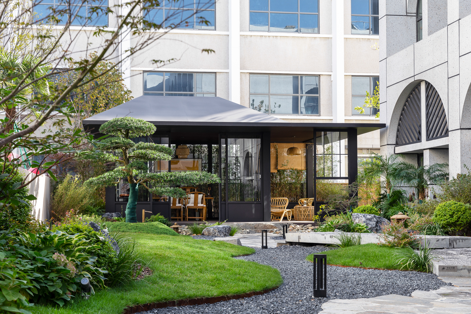 园博小镇以“留为主,改、拆、移为辅”的原则进行建筑更新,最大程度保留和保护既有建筑和现状植被